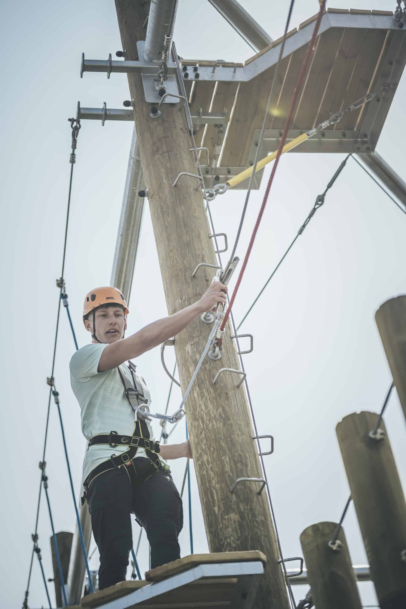 5. Please wear clothing with room for easy movement & with no loose clothing/material that could catch on any of the High Ropes course.